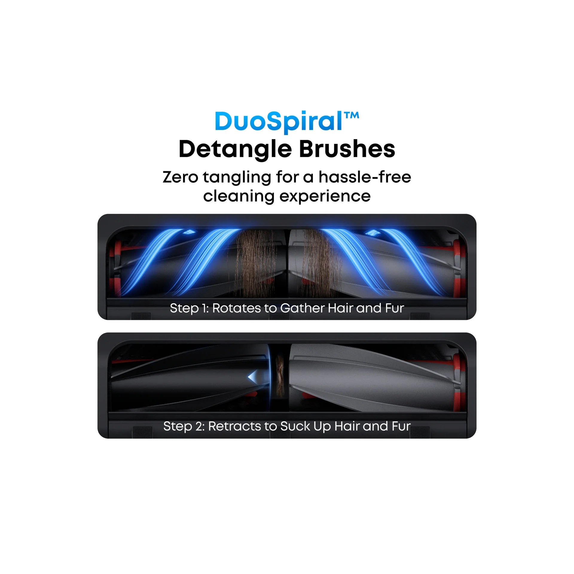 - DuoSpiral borstels: DuoSpiral borstels voorkomen dat haren verstrikt raken en verminderen de onderhoudsfrequentie, voor een probleemloze schoonmaakervaring.
